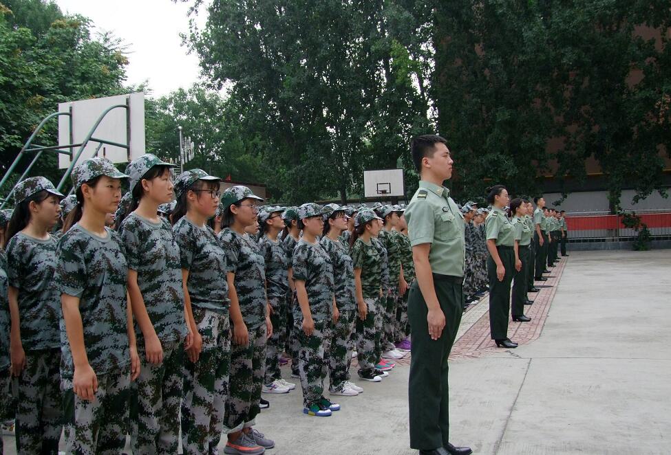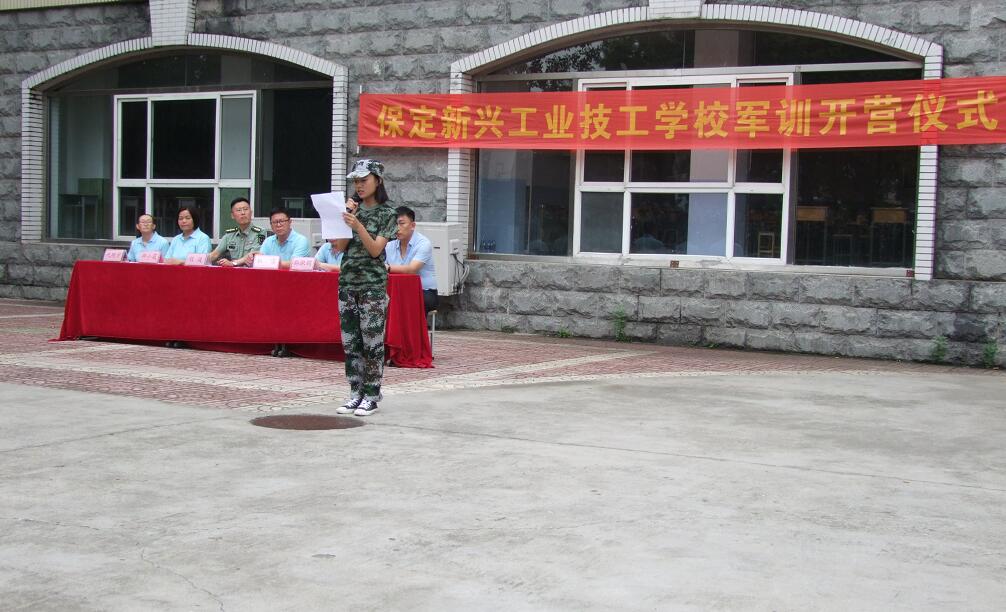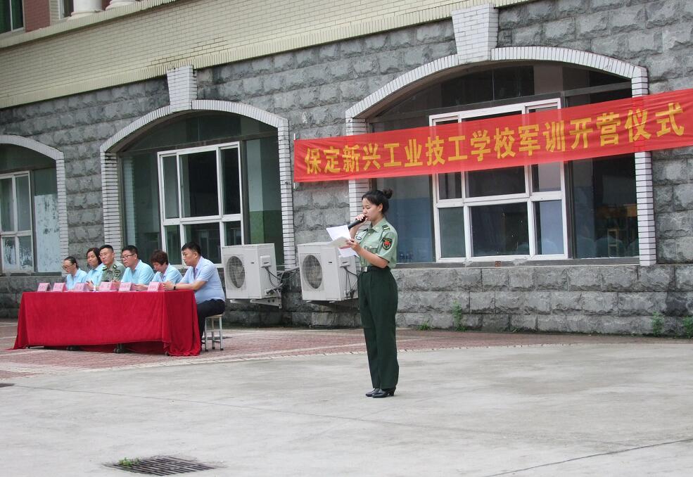 保定新兴工业技工学校2020年秋季级学生军训开营式在校篮球场举行。石家庄财经职业学院武装部部长兼工会主席仪波、学校副校长杜雷、孙淑娟、田晓霞、郭绍刚,招生就业办主任代艳学出席开营式。全体承训官兵、跟训的30余名教师、2020年秋季级参训学生参加了开营式。